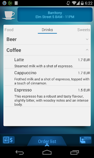 Ordering in bars just got easier! No need to call the waiters, just scan the barcode at your table and order your drinks directly from this app. The order will be placed instantly, even if cafe is extremely busy. No need to call the waiters