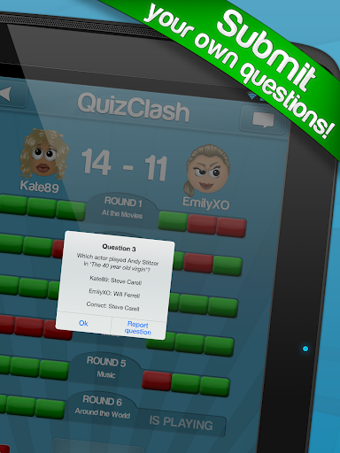 In QuizClash you can challenge your friends and other players to rounds of quiz questions.
