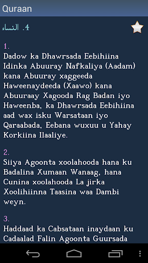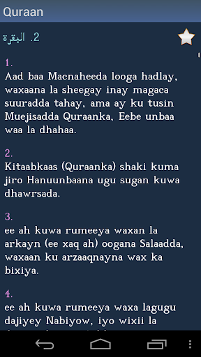 This is Qur'aan - Quran in Somali (Mahmud Muhammad Abduh). The Application is OFFLINE and does not need the internet connection.