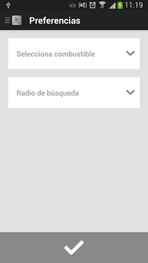 Selección combustible: selección del tipo de combustible sobre el que se desee obtener los precios en el momento de utilizar la aplicación.