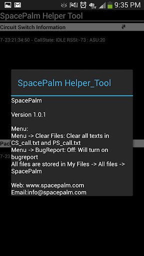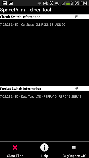This tool helps to track all RF signals for CDMA including LTE. Whenever signal has a problem or happen some events, it should detect RF condition between network and mobile device and tell you what the RF condition is. There are two separate window to show Circuit Switch and Packet Switch call respectively. Moreover, this tool collect the logs on each event.
