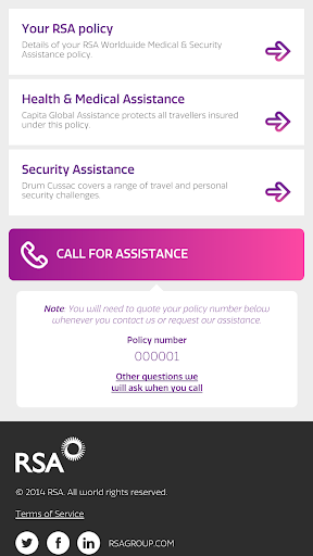 We’ve created the Travel Assistance app for RSA commercial business travel customers, to provide guidance and contact information in the event of an emergency medical or security situation while travelling abroad.