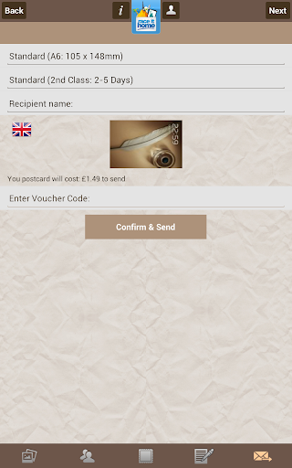Postcards send to the uk cost from 99p and take 1-5 days; other countries from £1.99 and take 3-10 days.