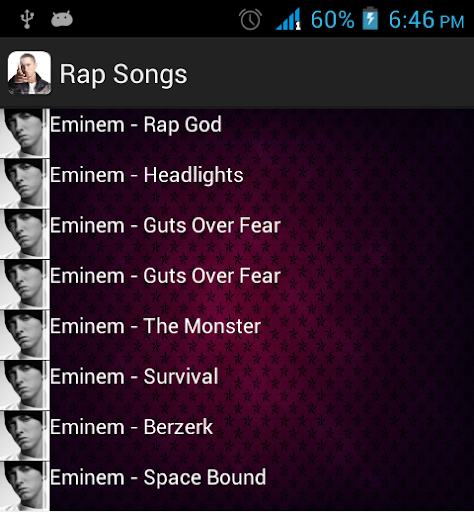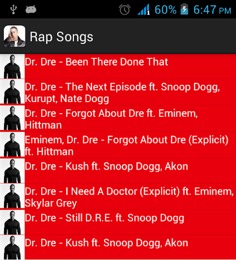Rap Song - This application contains rap songs from famous rap start like Emenim, Dr. Dre & Linkin Park. This application contains large collection of songs of these rap stars.