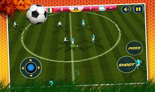 In this real soccer game you can choose your favorite team and make it world champion. You can also control your team players in the ground during tournament with simple buttons like "Shoot", "Pass". Starting with a beginner level you can enhance your players competency level to compete the champion teams of the world.