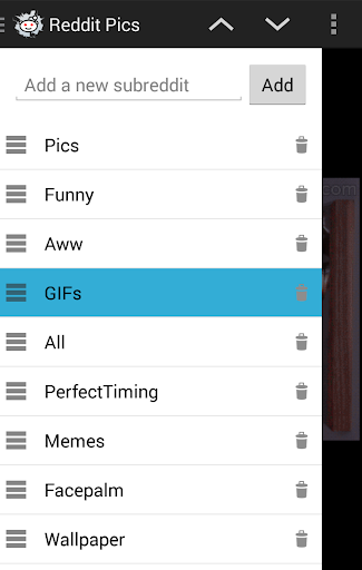 You can access the subreddit list from the top-right corner of the screen or by swiping from the left edge of the screen. Change images by swiping right or left. Hide & show the title by tapping on the picture.