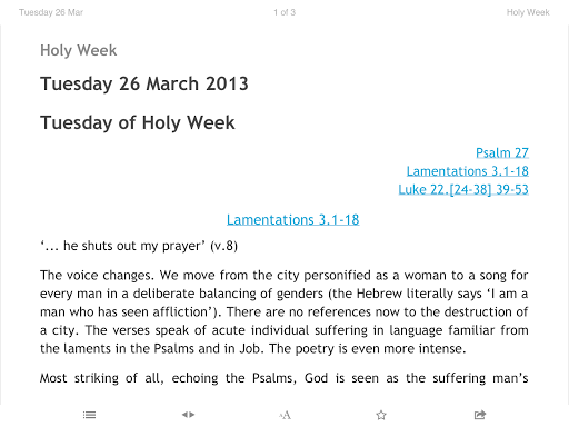 - Follow Bible reference links to the online Oremus Bible Browser (NRSV) - no need for a separate Bible app