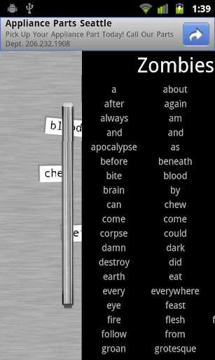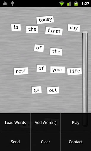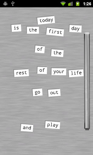 Now you don't have to be next to the fridge to write your inner angst (or channel your inner muse). Just like other magnetic poetry word game: form poems, phrases, or nonsense about or because of your daily life!
