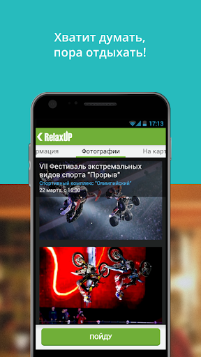 Бесплатное приложение Relax UP создано для быстрого и удобного поиска самых интересных мероприятий Вашего города.
