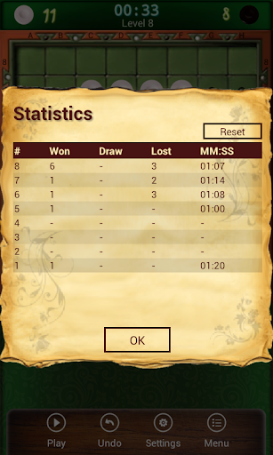 Reversi or just Othello - a strategy board game for two players, played on an 8×8 uncheckered board. There are 64 identical game pieces called disks, which are light on one side and dark on the other. Players take turns placing discs on the board with their assigned color facing up. During a play, any discs of the opponent's color that are in a straight line and bounded by the disc just placed and another disc of the current player's color are turned over to the current player's color.