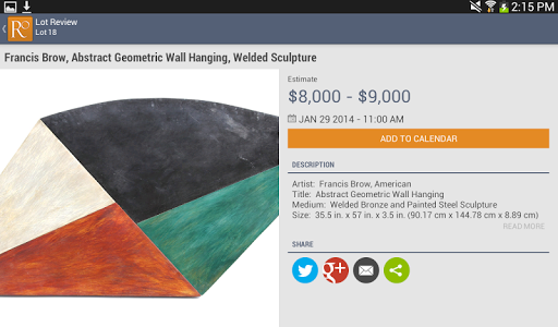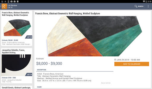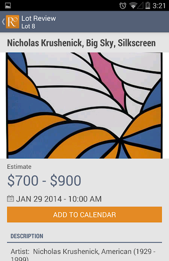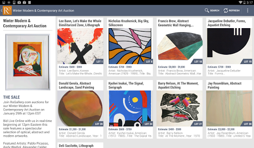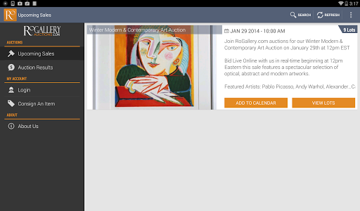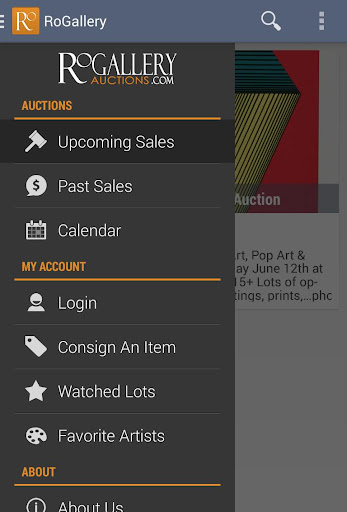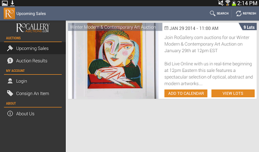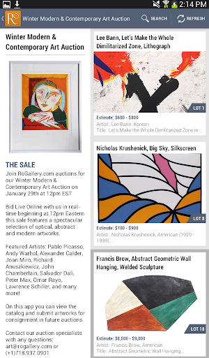 Bid and Win Fine Artworks from over 5000 modern and contemporary artists with the RoGallery.com Auctions Fine Art App! Win at auction museum quality paintings, prints, photographs & sculptures, we ship world-wide. Users can also submit artworks for future auctions either by consignment or direct sale directly to RoGallery.com through this App.