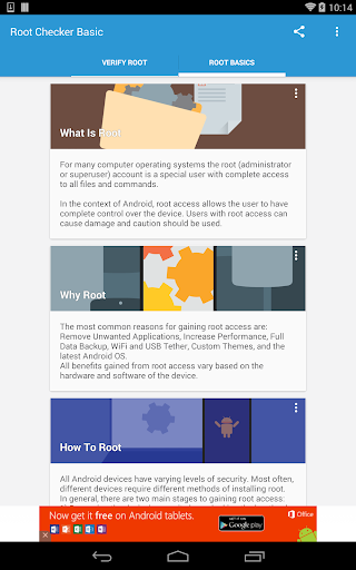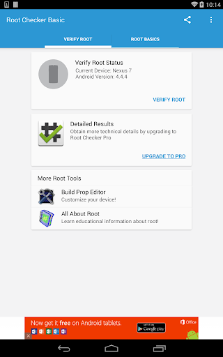 Verify proper root (superuser or su) access is configured and working using Root Checker! Free, fast, easy, and used on over 10 million Android devices, Root Checker shows the user whether or not root (superuser) access is properly installed and working.