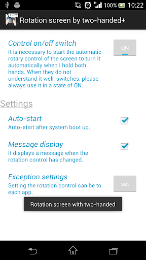 This app I've found that does not work properly in a state in which to enable the smart screen rotation. The time of the application use, thank you so Masu off to set the top smart screen rotation. In addition, smart screen rotation will be set in a state in which the automatic rotation of the screen is enabled.