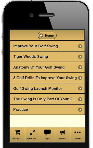 This application is packed with tips, including how to develop a Tiger Woods golf swing. In addition to improving you golf swing you can keep up with all the latest golfing news and general news for location. we have added a special Ryder Cup Audi and Videos section and the Latest Callaway Golf Sale Items as we are big Callaway fans.