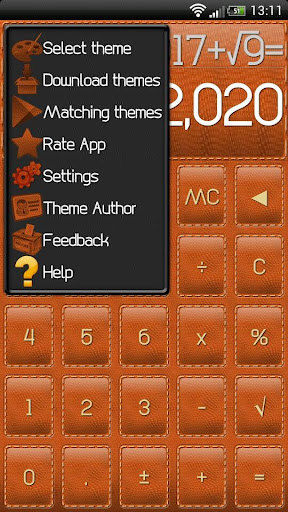 皮革的主題換膚的計算器,更換皮膚,壁紙和按鈕,以匹配所有的主題,如GO應用程序的主題,ADW等。可以從谷歌Play商店下載主題換膚計算器。