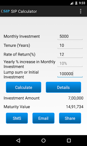 SIP calculator calculates the future value of SIP (Systematic Investment Plan) Payments. It help you to calculate future value of your monthly investment in Mutual Fund, Public Provided Fund (PPF) or Fixed Deposit (FD) in bank or post office.