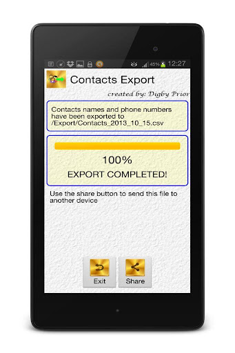 Use the share button to get a copy of the export file off your phone as an sms backup.