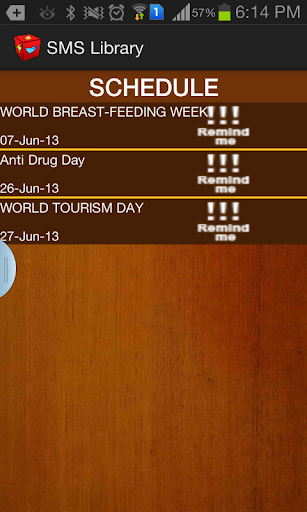 • Events list to remind you of important events like Friendship Day, Mother’s day, Father’s Day and important festivals