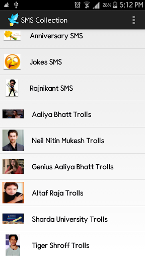 1 categories wise message(Friendship SMS, Love SMS, Boyfriend ,GirlFriend ,Romentic SMS and Birthday SMS etc.)