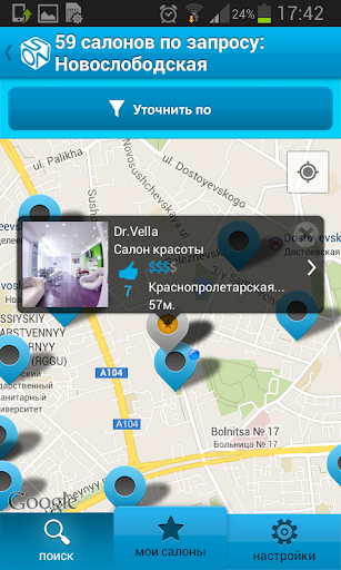 ✓ Функция Рядом с вами - для того, чтобы найти салоны красоты поблизости