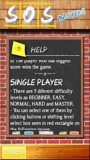 We guarantee that you will have fun while playing SOS Masters against 5 detailed AI levels (Beginner, Easy, Normal, Hard, Master) or your friends in multiplayer mode.