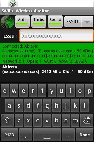 The scanner basic functionality are autoscan fast and slow, normal scan on demand, turbo scan, looking for types of networks, types of encryption to seek, search for channels, search for ESSID, search for BSSID, search by signal strength, search for WPS, search for ESS, sound to warn filtered networks, a network connection status and a description of wireless networks.