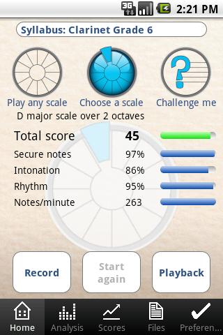 ScaleHelper supports multiple users, keeping each user's history for each of their instruments. You can save recordings to study later or to show and play to your teacher and friends. Have fun competing with your friends to see who can get the highest score or who can maintain the highest average.