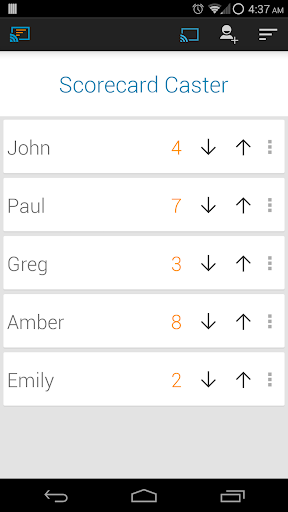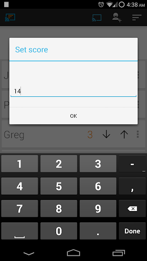 Keep score for your games! Also works with Chromecast! When connected to a Chromecast device, the current scorecard will instantly be reflected on your Chromecase device, as well as on any other connected Android device.