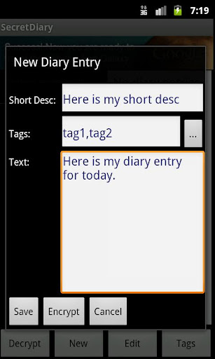 Need a private place to store all you personal thoughts? An encrypted, password protected diary. Enter your most private thoughts here! No one will be able to see them! This app also includes the capability to store all your passwords. Don't worry about remembering your passwords - store them here. Then you'll only have to remember one password!