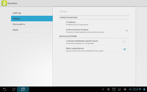 SecureDoc for Android is a mobile security management application for customers using WinMagic’s data encryption and security solution – SecureDoc Enterprise Server (SES). SecureDoc for Android enables SES administrators to manage the authentication, device security and monitor the encryption status of the Android tablet devices.