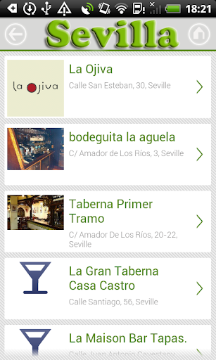 Sevilla City Guide searches and navigates near by businesses around your location.