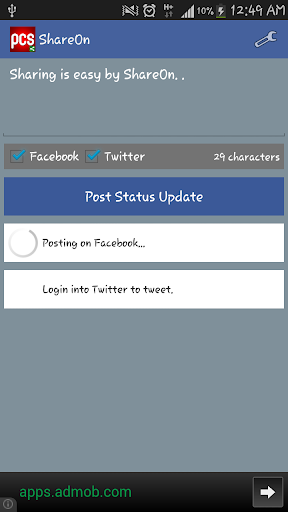A light weight application to share thoughts on Facebook and Twitter. It can be used to share images on Facebook.