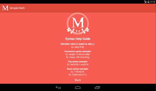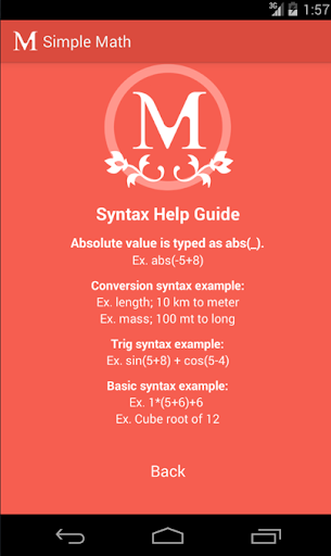 To use the application, simply launch, type the equation you wish to solve. Make sure to check out correct syntax guidelines in the Help guide section in the application.