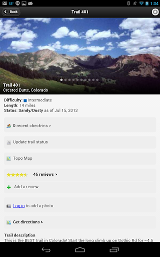 - Add trail reviews and photos directly from the app. Check in and update trail status.