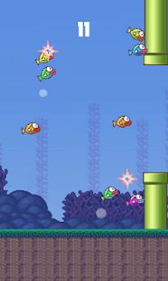 The hateful bird has now metamorphosed into the artful fish. These fishes kept by powerful pipes are trying to swim towards the the pipes.