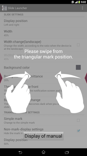 When you start this app once, this launcher is displayed by the slide operation at any time.