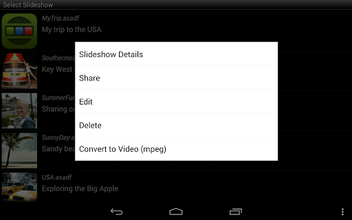 With our application you can create an amazing slideshow of your photos, add text comments and set background music! And then share it with your friends – convert to video and email it, or post on Facebook and YouTube.