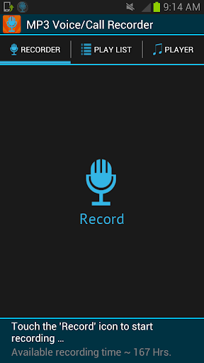 ★Alternate launching option: Open MP3 Voice Recorder icon and touch the record icon of the RECORDER tab