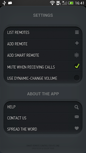 Extra flexibility in customizing tasks, like sending any command you choose (like MUTE or POWER OFF) at a time of your choosing, or when your phone rings. Feel free to send us other actions upon which you would want to send IR commands!