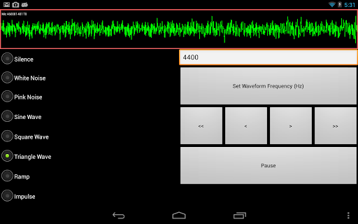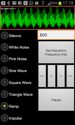 Soundform generates White and Pink Noise, Sine, Square, Triangle, Ramp waves and Impulses. Uses multiple cycled buffers, refreshed randomly, so ensuring truly random White/Pink noise.