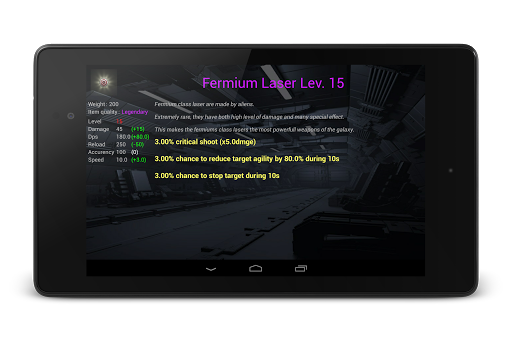- Améliorez votre vaisseau (laser, bouclier, missiles, moteur hyperdrive, booster, etc)