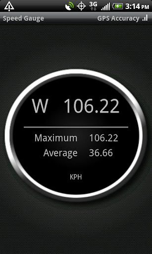 Speed Gauge provides a GPS based speedometer with the look of a high-end digital display. Displays for Speed, Speed & Direction, Metrics (with max & average), Big text, or all GPS info. A Heads Up Display (HUD) mode with mirrored text is available for all displays. Includes GPS accuracy bar icon. Preferences for MPH/KPH, background image, and decimals. This app pauses when not active to conserve battery.