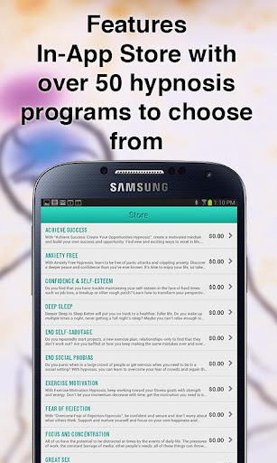 * Your choice of one of eight different soothing background animations and sounds to enhance your hypnosis experience