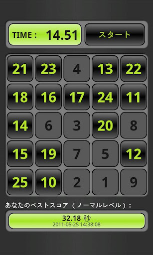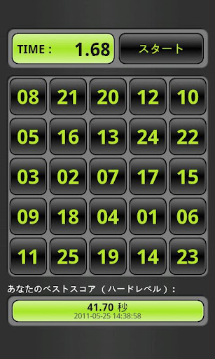 - It is arranged in the number from 1 to 25 at random. "25 Tap Mode".