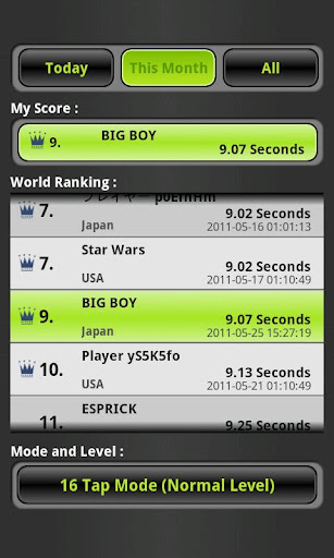 - It is arranged in the number from 1 to 16 at random. "16 Tap Mode".