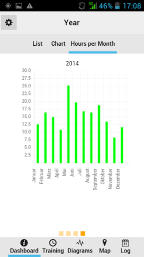 After starting the app you get an overview of all your sport activities.
