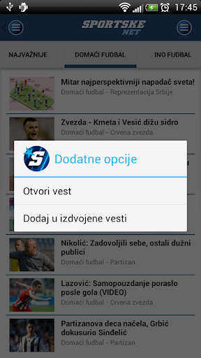 Najnovije sportske vesti iz zemlje i sveta možete pratiti i putem Sportske.net Android aplikacije. Ne propustite vesti iz domaćeg i međunarodnog fudbala, najnovije transfere, košarkaške, teniske i aktuelnosti iz drugih sportova ma gde da se nalazite.