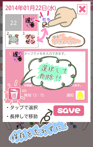 「ズームイン!!サタデー」など各種メディアに取り上げられ、今とても話題の女性向けカレンダーアプリです!