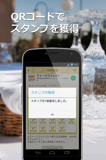 スタンプカード、クーポン、スクラッチカード、店舗の検索に位置情報を取得しますので、
