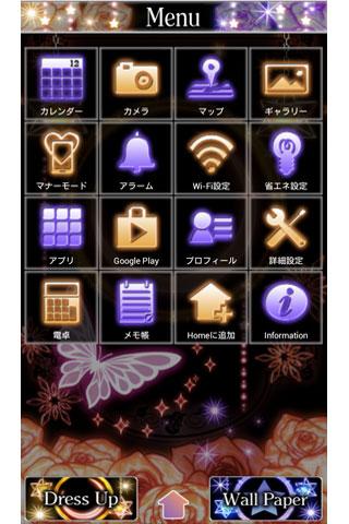 ★壁紙&アイコン増量★イエローゴールド系、パープル系2色の壁紙を搭載!更に幻想キラキラ系アイコンを20点増量!